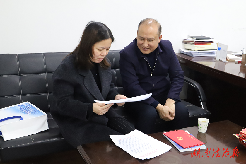 走訪期間,劉建勛衷心感謝鄧華代表長期以來對檢察工作的關心與支持,為其呈送了《2025年全國檢察工作情況通報》《2025年湖南省檢察工作報告》《高質效辦好每一個案件檢察答卷》等資料,系統(tǒng)匯報了過去一年檢察機關在高質效履行法律監(jiān)督職責、服務保障經濟社會發(fā)展、辦好檢察為民實事等方面取得的工作成效,并誠懇征求代表對檢察工作的意見建議。